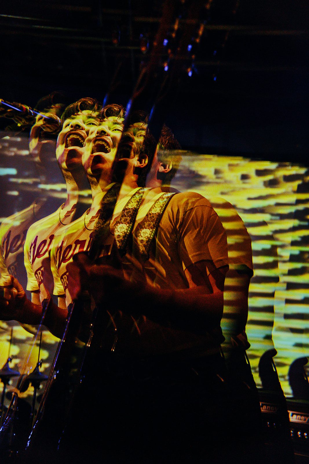 After a quick set change, the stage was bathed in kaleidoscopic hues from a vintage-style overhead projector swirling with color—a visual cue that Levitation Room had arrived to alter time and space. The Los Angeles-based quartet, formed in 2012 and signed to Greenway Records, has carved out a niche in the modern psych scene with their dreamy blend of 60s-inspired garage rock, breezy pop, and spacey textures.