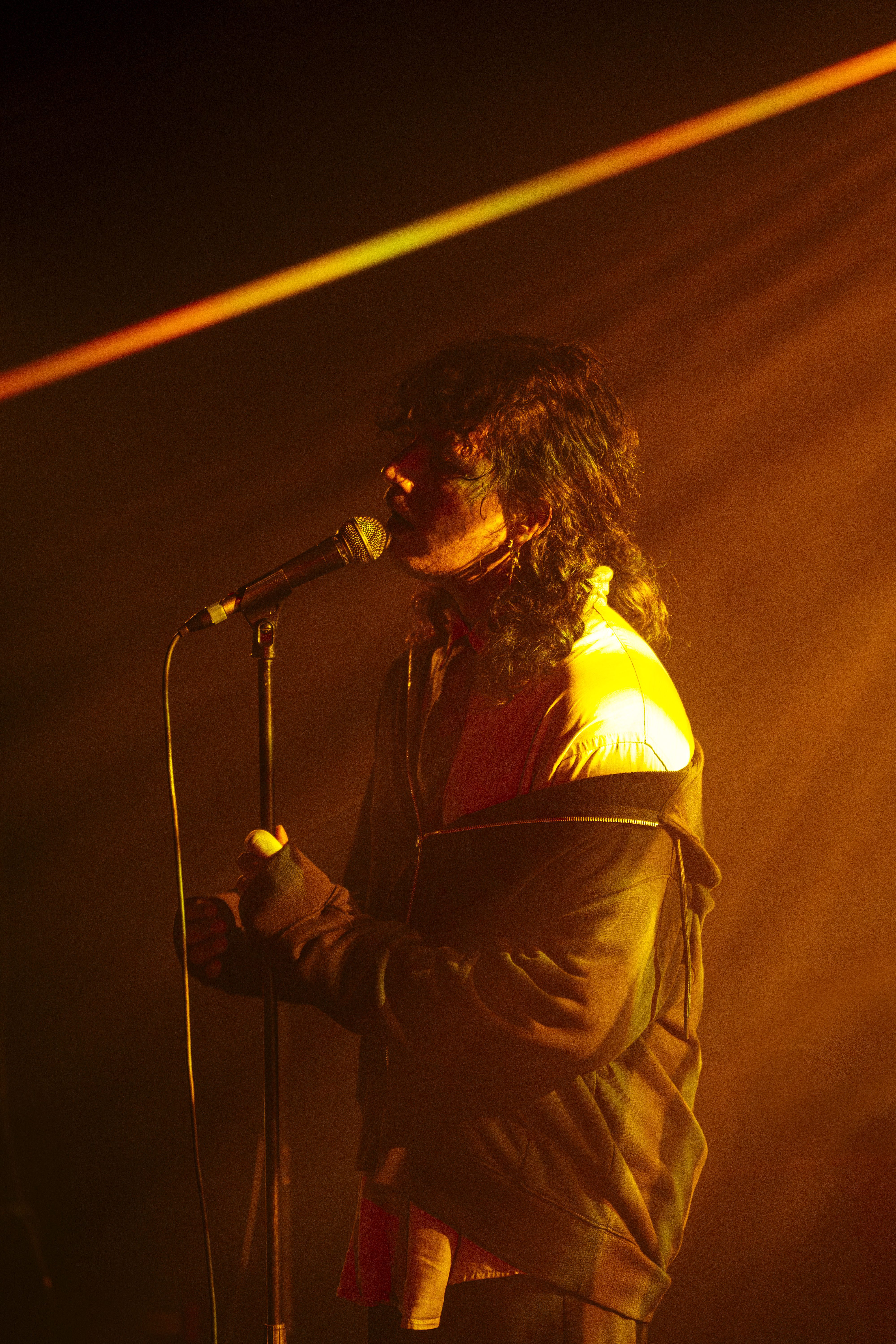 They closed their set with a deeply emotional track, “Alors je descends plus bas.” They explained, “It’s a song where I didn’t put just one breakup, but every kind—friendship, romantic, and even musical breakups.” It was as sad as expected, but as the track went on, a hyperpop beat and pulsing bass kicked in, and the crowd started dancing despite the heavy subject matter.