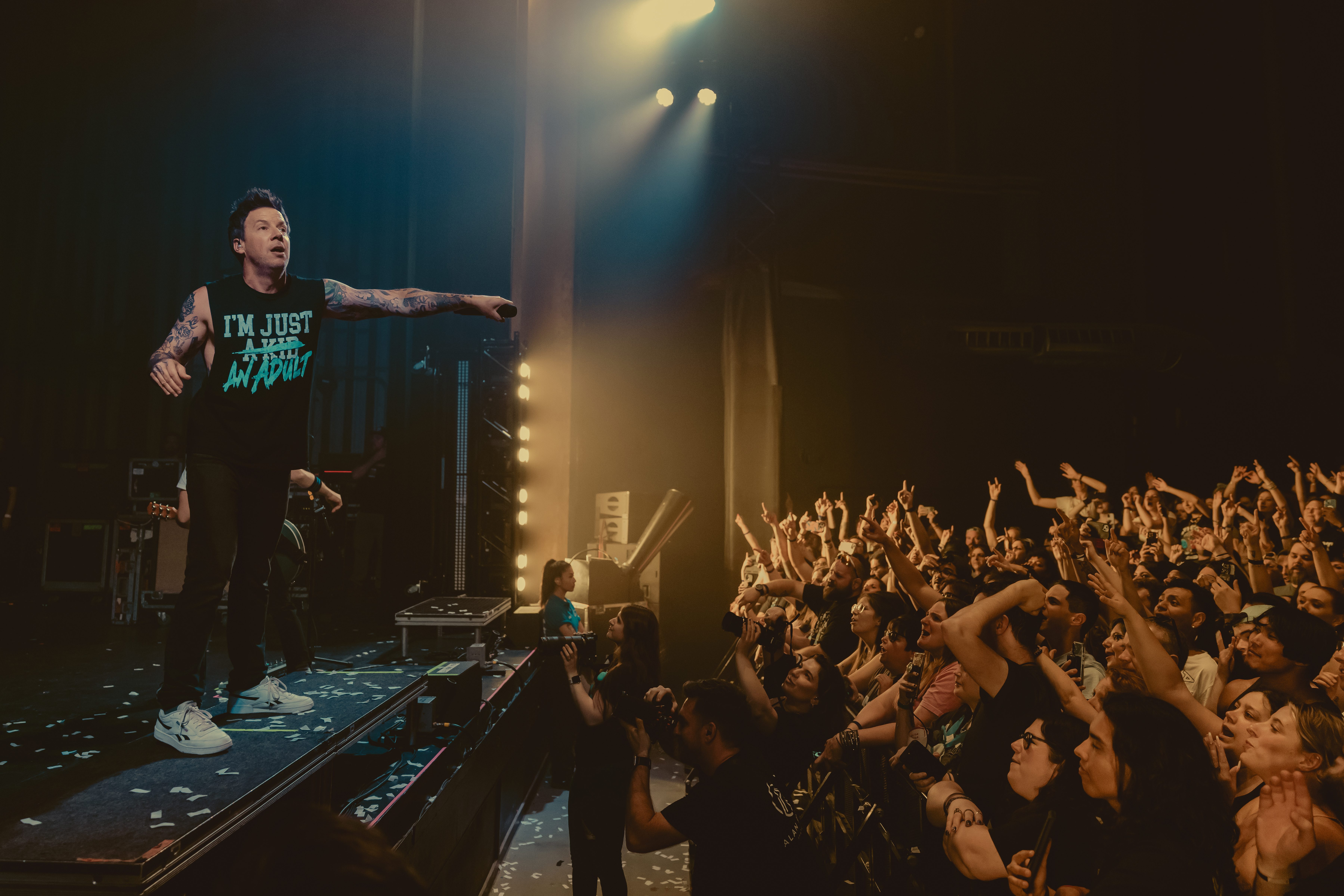 I’ve covered countless shows at College Street Music Hall, but Simple Plan‘s mid-week stop hit different from the moment I arrived. The line stretched down the block before doors opened, something I’ve rarely seen at this venue. Fans wore shirts that said, “I’m Just a Kid,” with the word “kid” crossed out and replaced with “adult.” It was a nod to us elder millennials growing up, but not growing out of the music that shaped us. That perfectly set the tone for the night: this wasn’t just a pop punk show. It was a reunion with our younger self.
