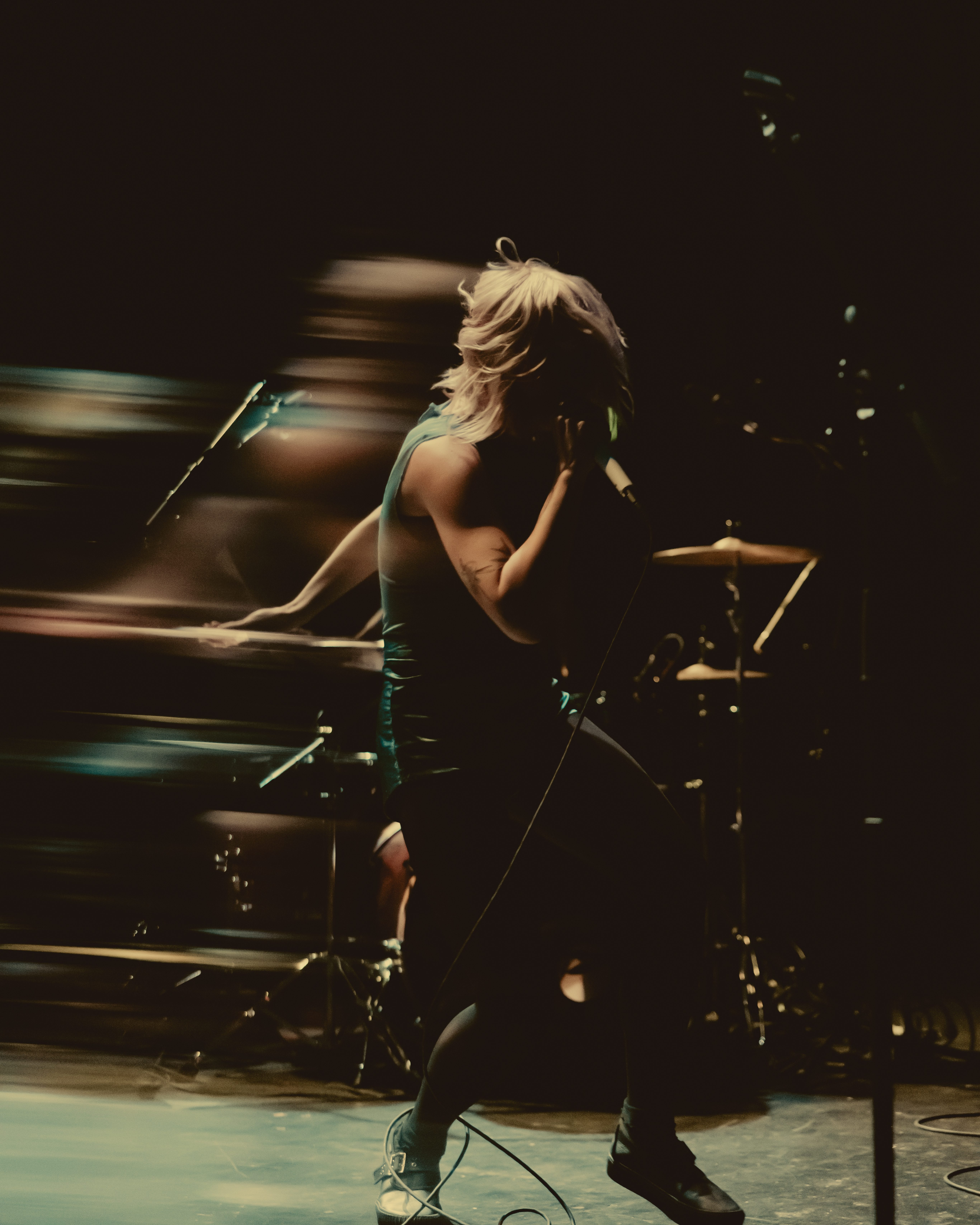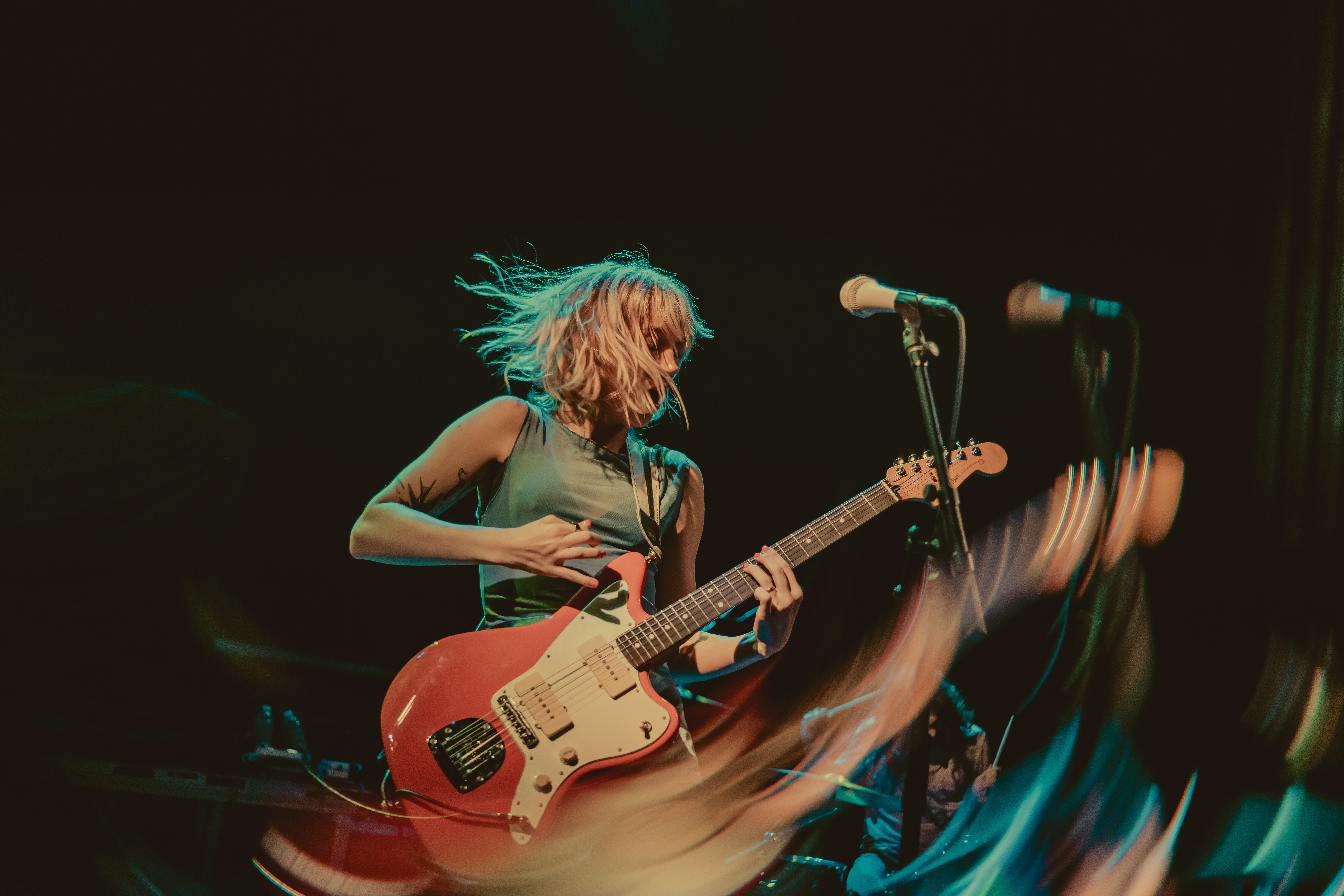 Then came Winona Fighter, and they turned the dial all the way up. Lead singer Coco Kinnon tore across the stage with unrelenting energy: jumping, pacing, and whipping up a crowd that couldn’t look away. Their raw enthusiasm was electric. While the lighting setup was fairly barebones for most of the set, everything changed during a phenomenal cover of Beastie Boys’ “Sabotage.” The stage suddenly exploded in color, matching the intensity they’d been delivering all along. Maybe it was intentional, as if the production had to hold back until it couldn’t anymore. Anything more from the start might’ve pulled focus from Kinnon’s fierce presence, and that would’ve been a mistake.