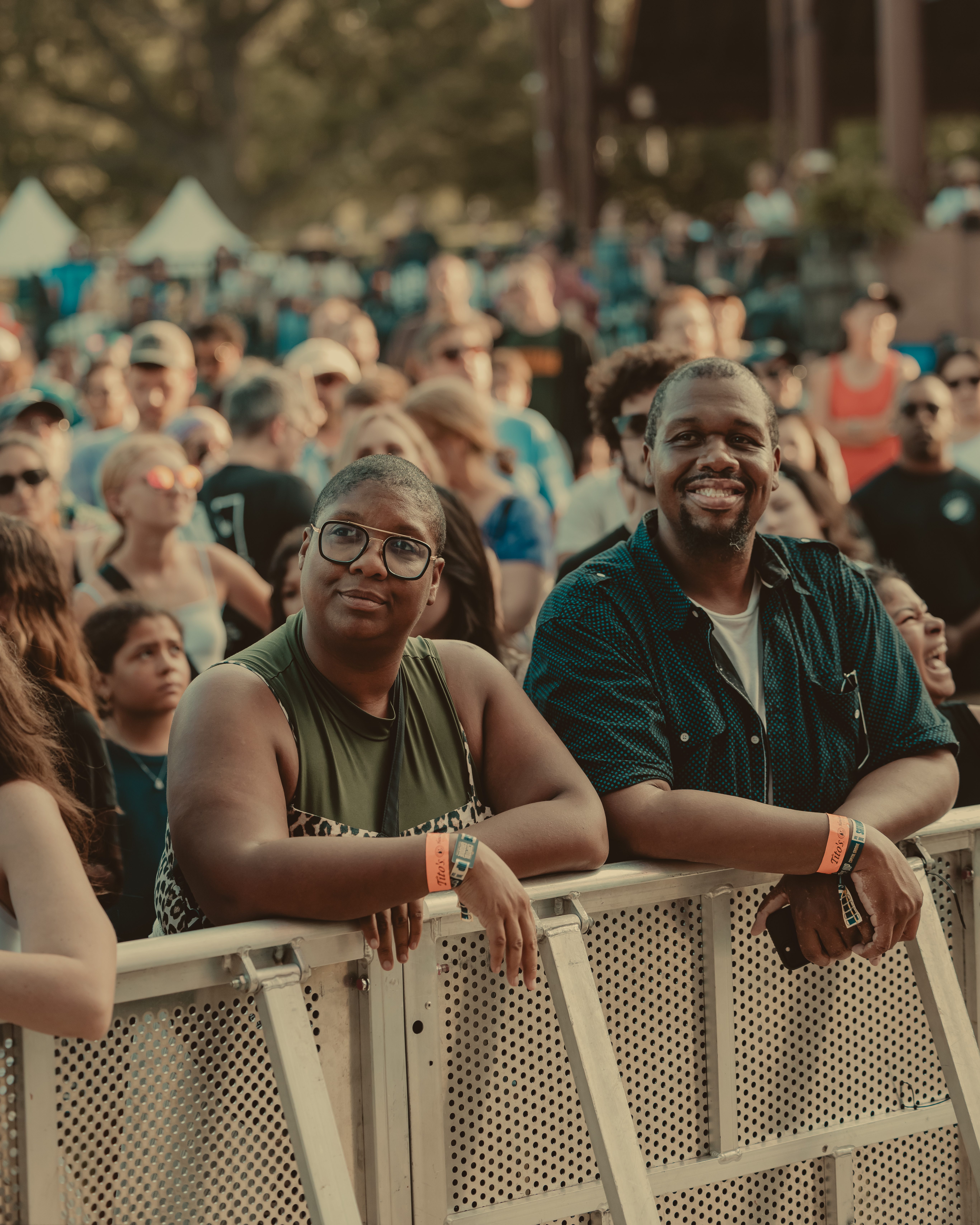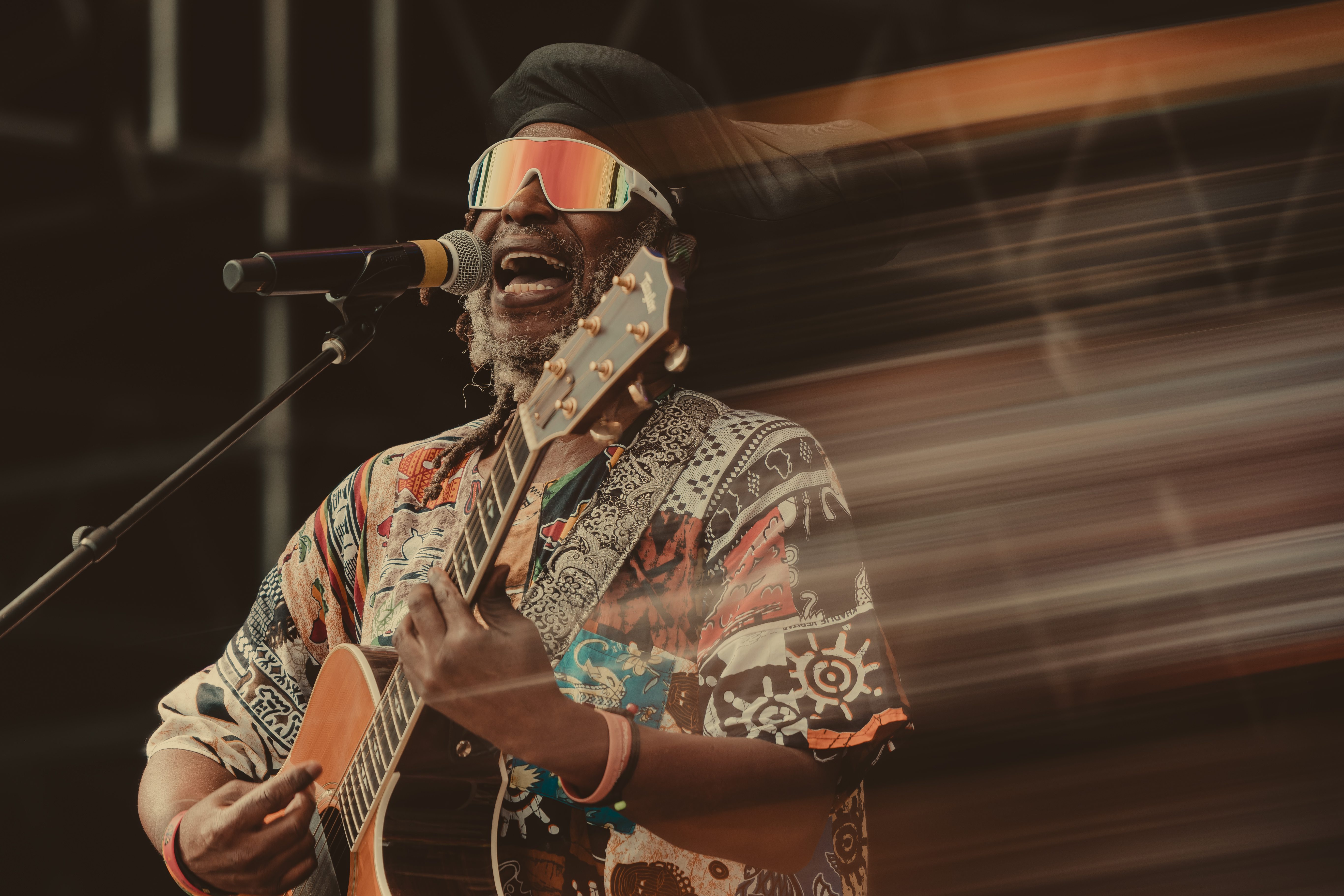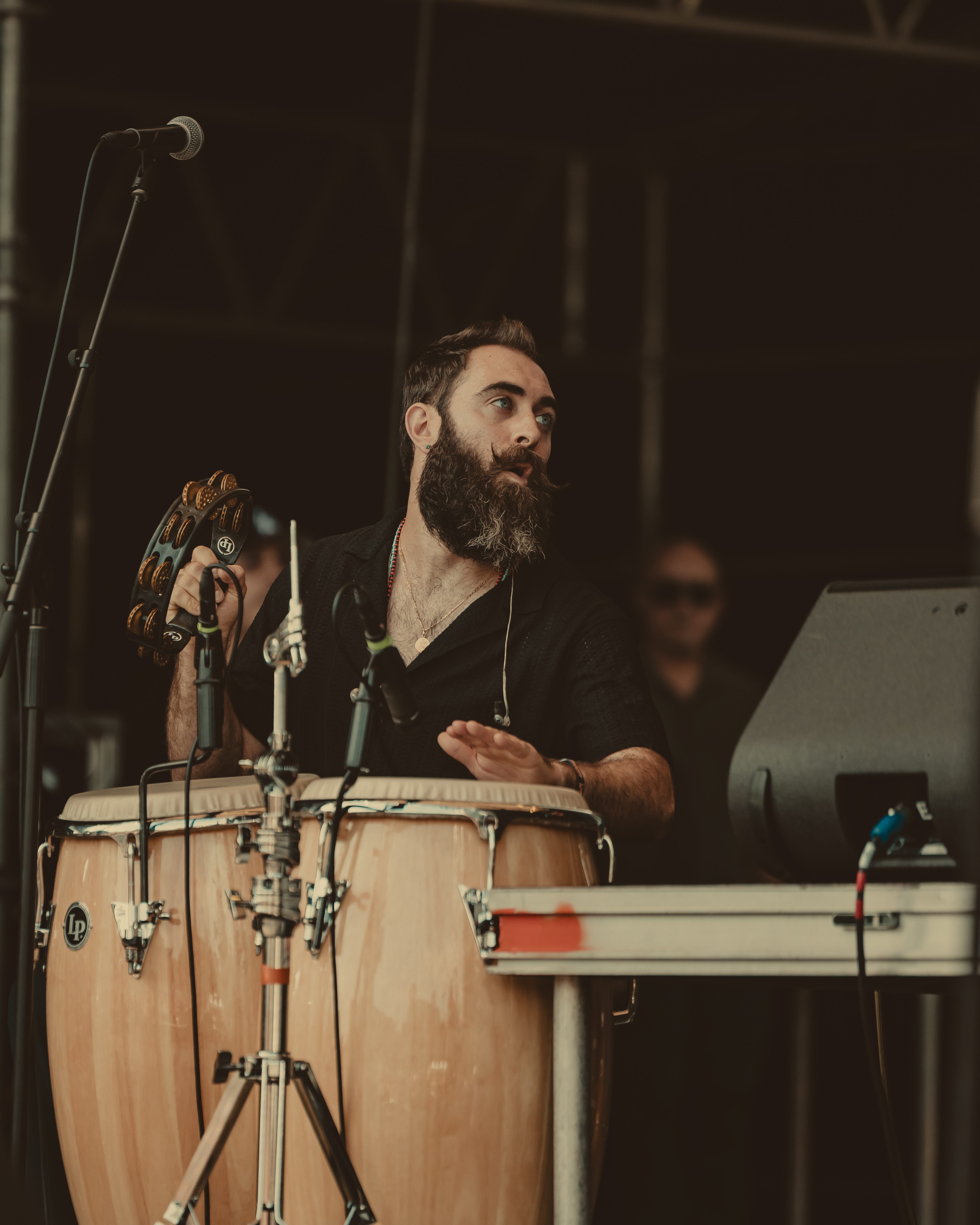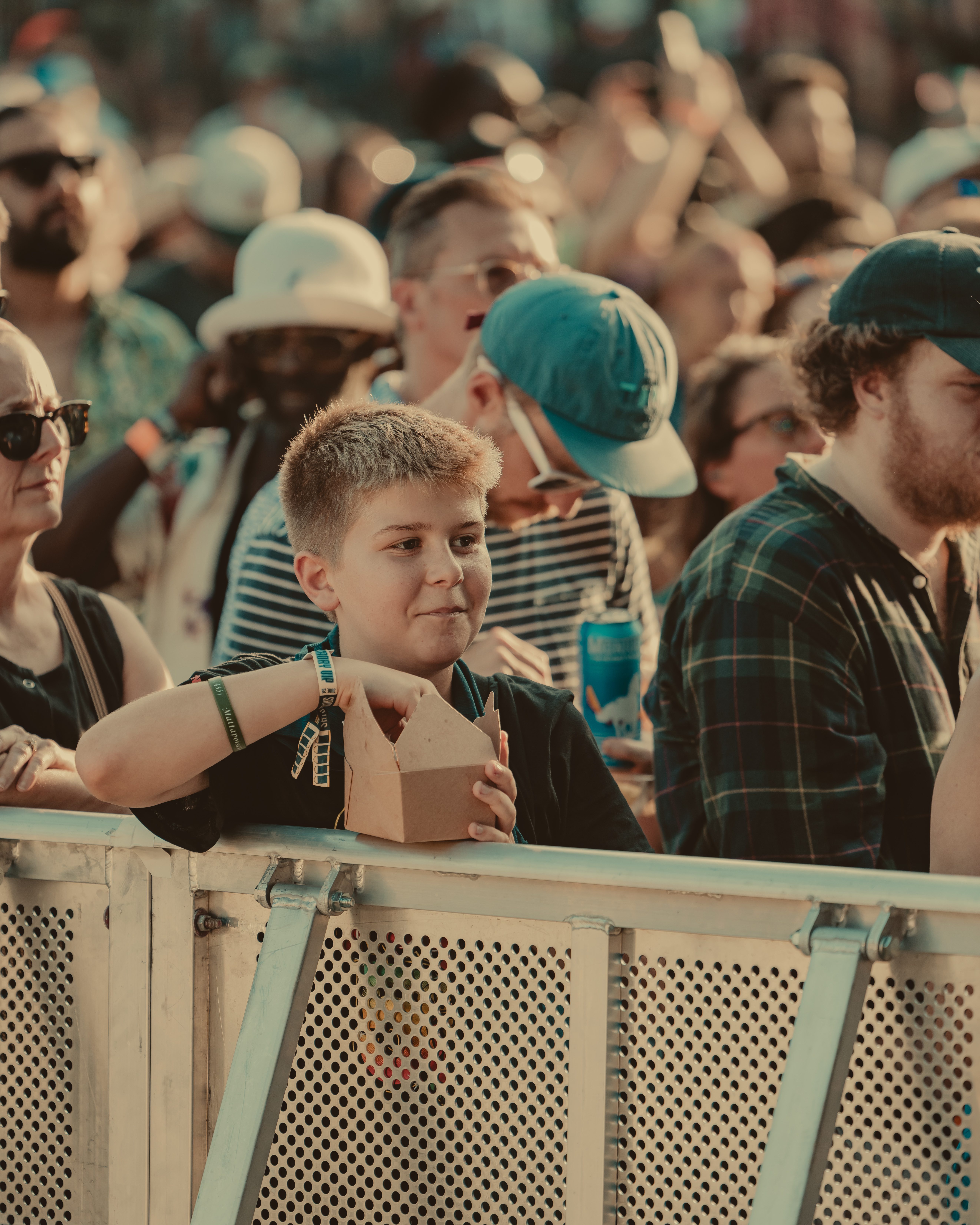 Thee Sacred Souls followed with a soulful set that connected deeply with the audience. The lead singer jumped off the stage to sing at the barrier, then by the end of the set, he surprised everyone by dashing into the lawn area, dropping into an empty camping chair as if to rest. With a playful head fake, he sprang back up and continued sprinting the length of the lawn. Fans swarmed around but stayed respectful, eager to soak up every bit of the frontman’s energy.