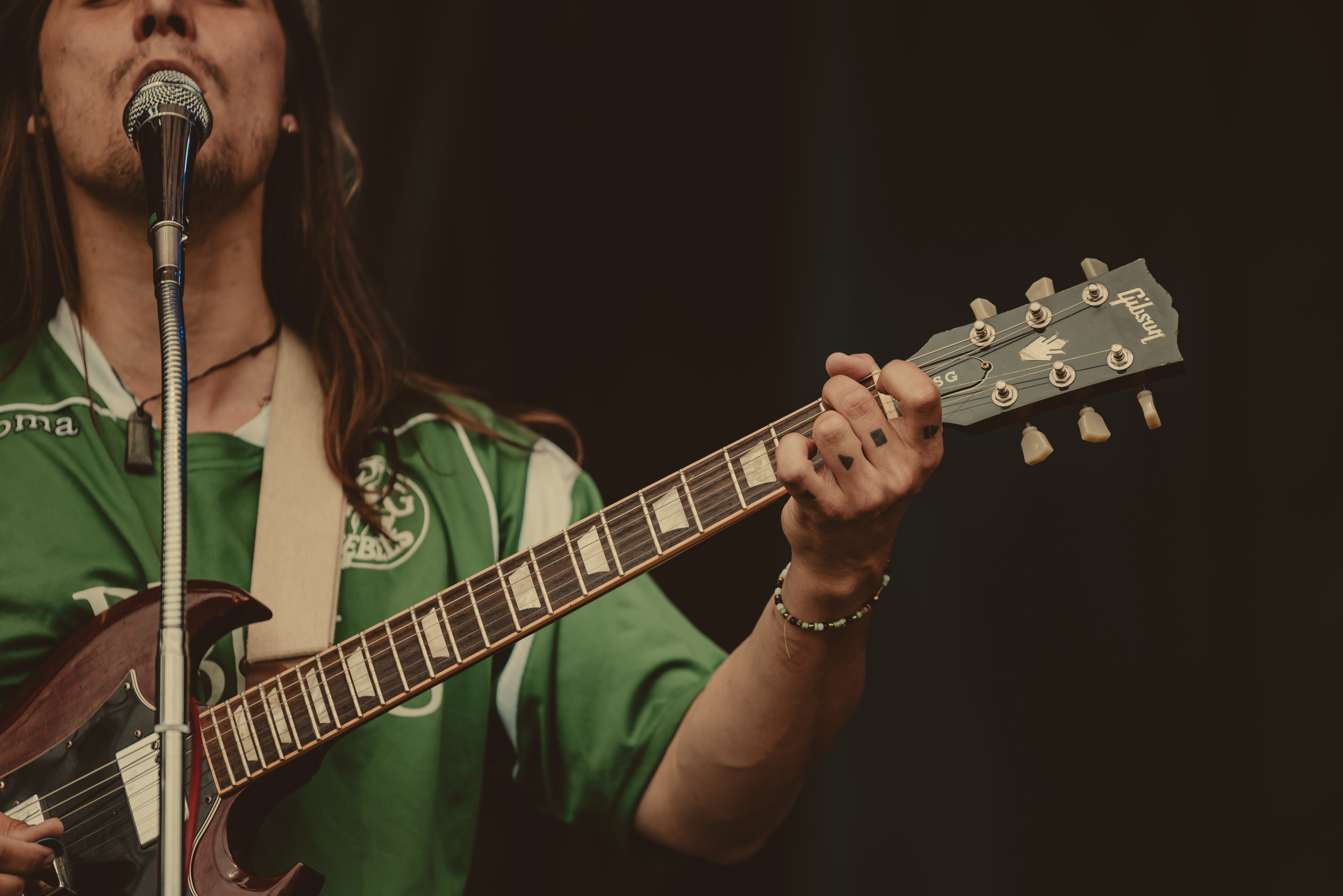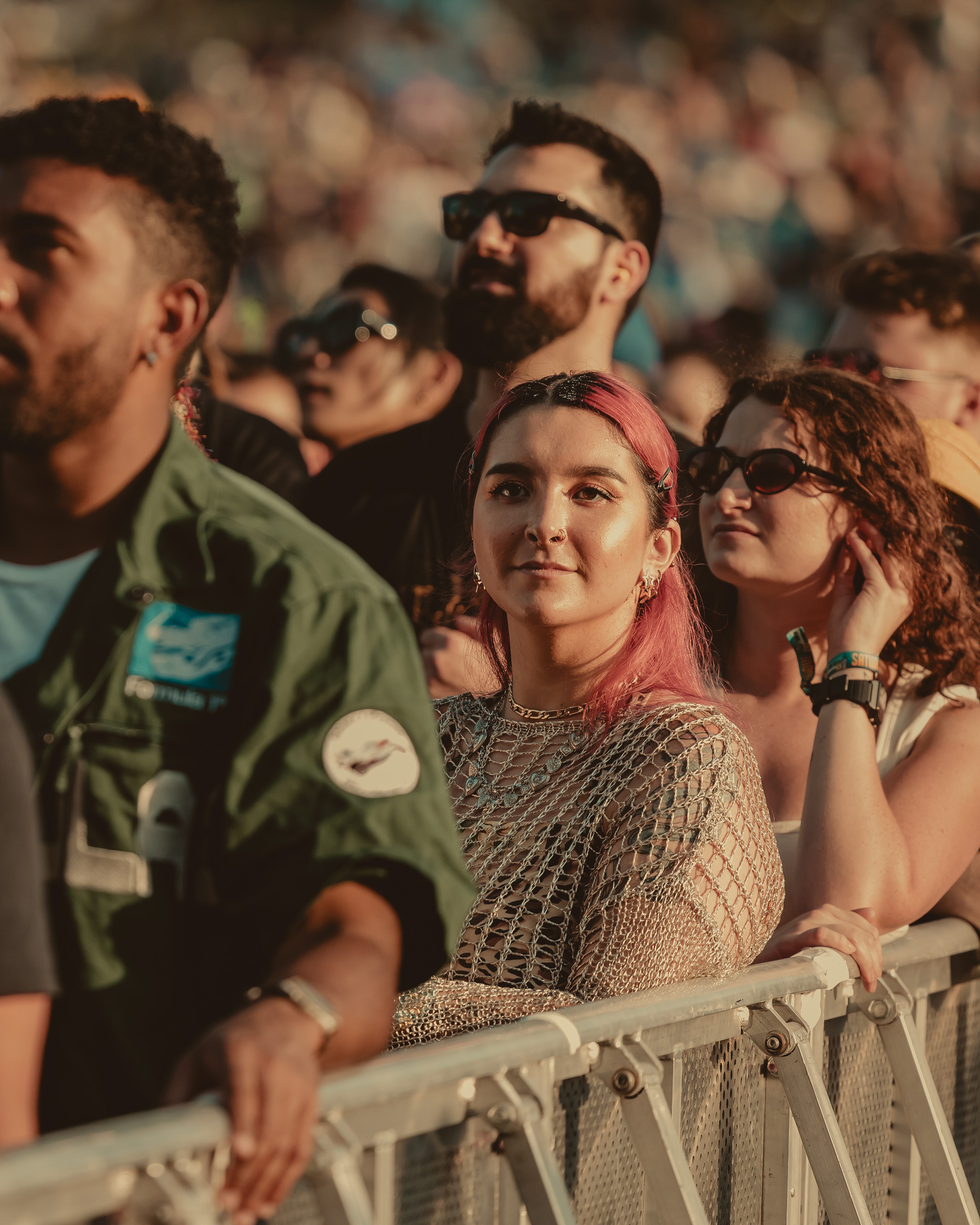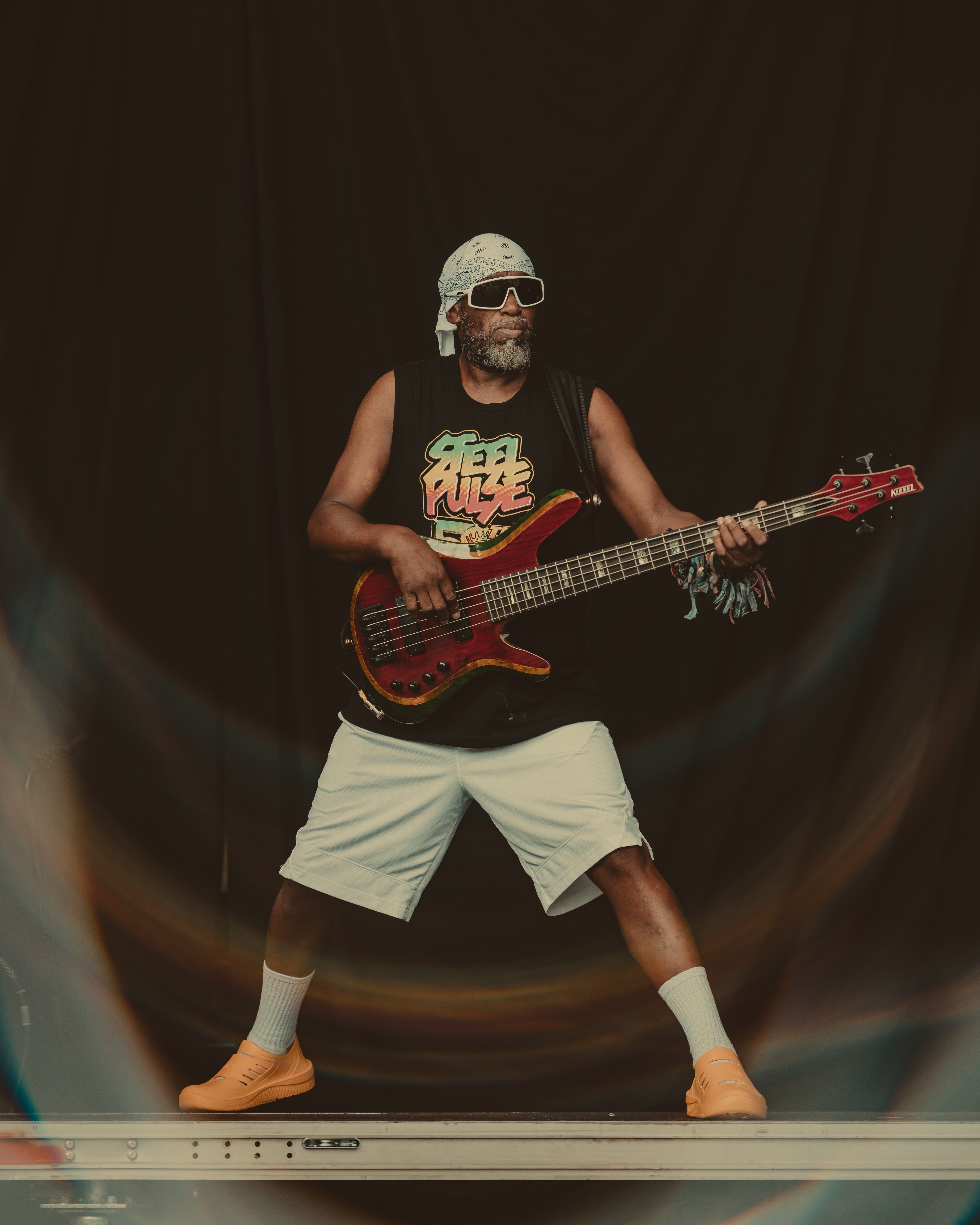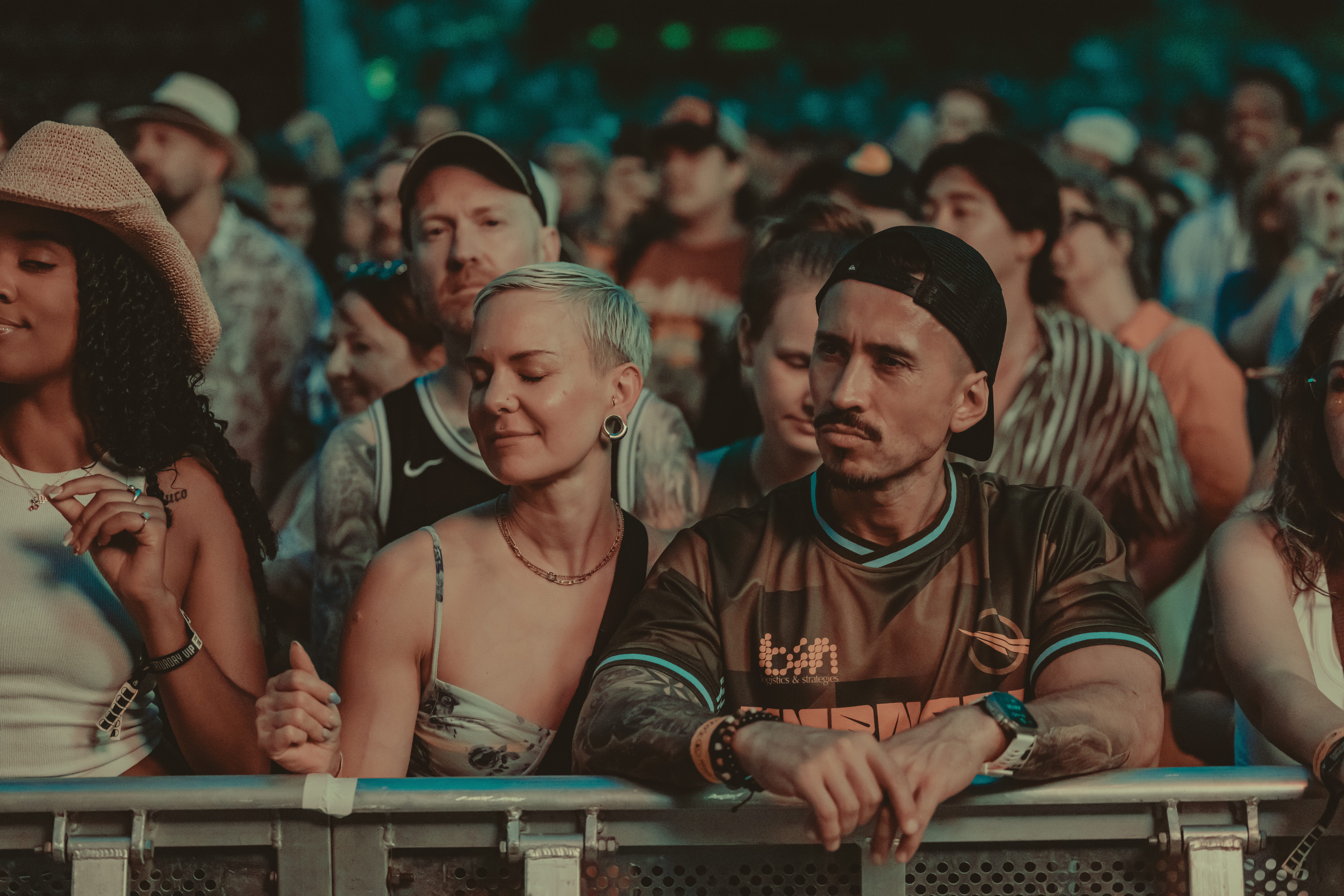 Thee Sacred Souls followed with a soulful set that connected deeply with the audience. The lead singer jumped off the stage to sing at the barrier, then by the end of the set, he surprised everyone by dashing into the lawn area, dropping into an empty camping chair as if to rest. With a playful head fake, he sprang back up and continued sprinting the length of the lawn. Fans swarmed around but stayed respectful, eager to soak up every bit of the frontman’s energy.