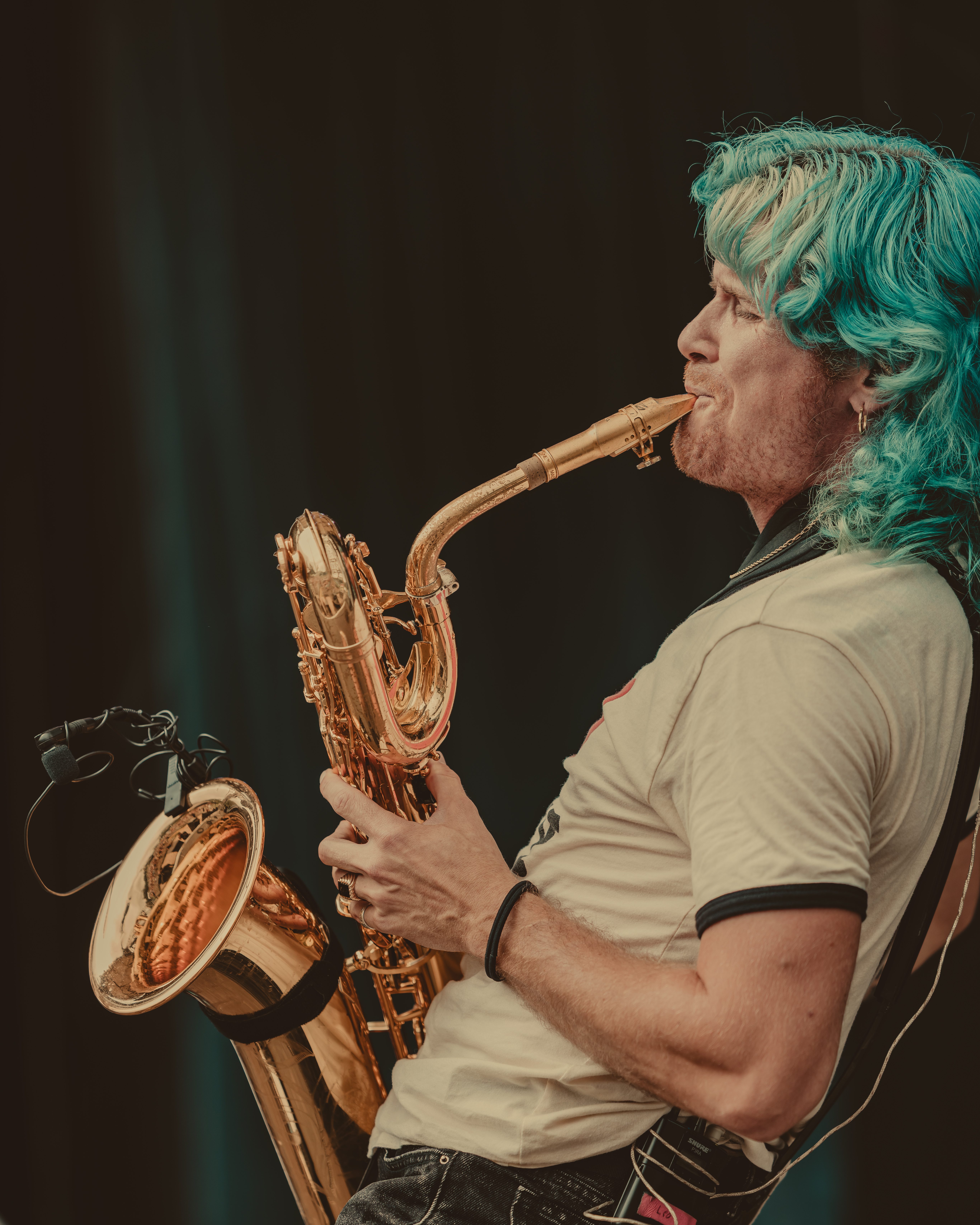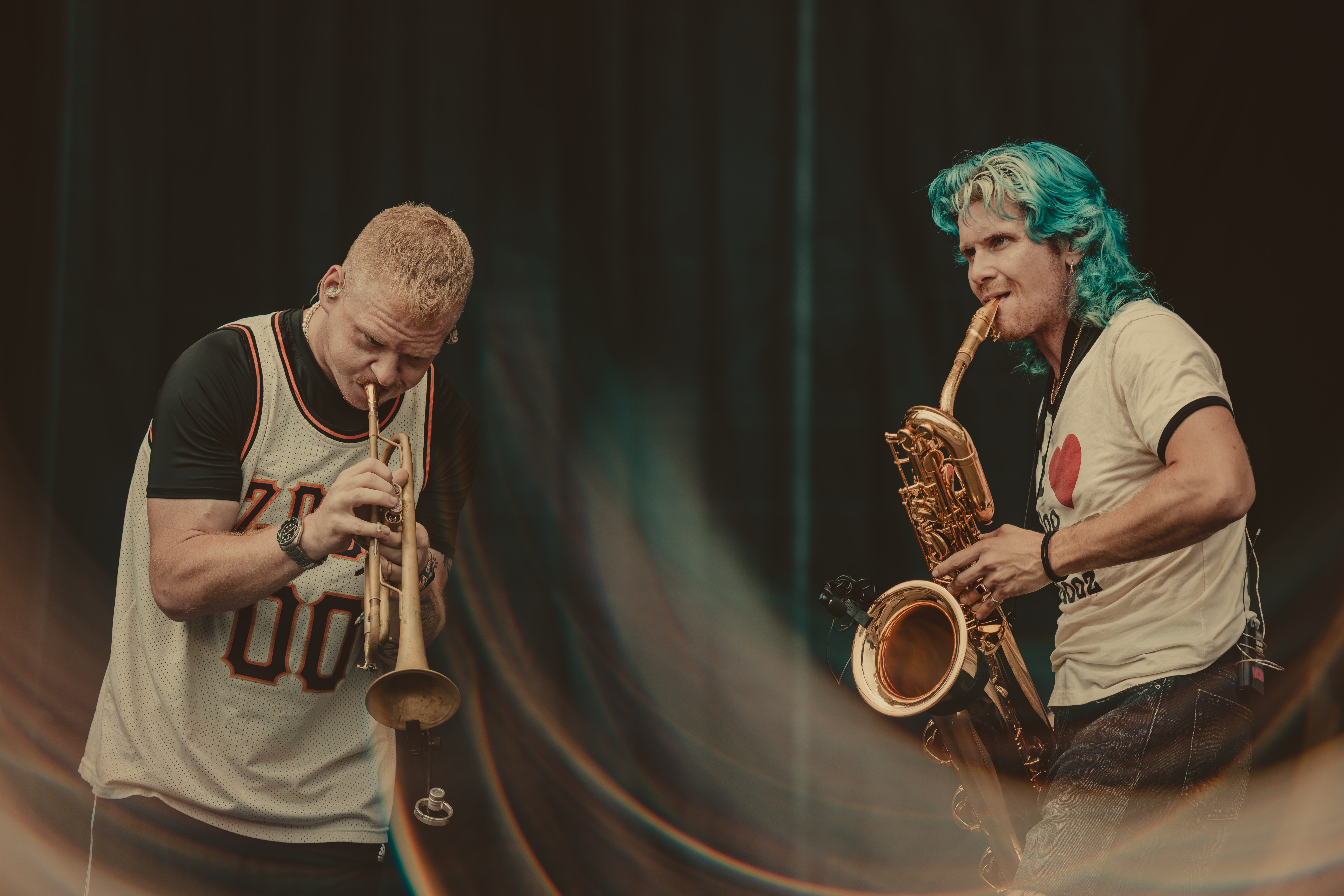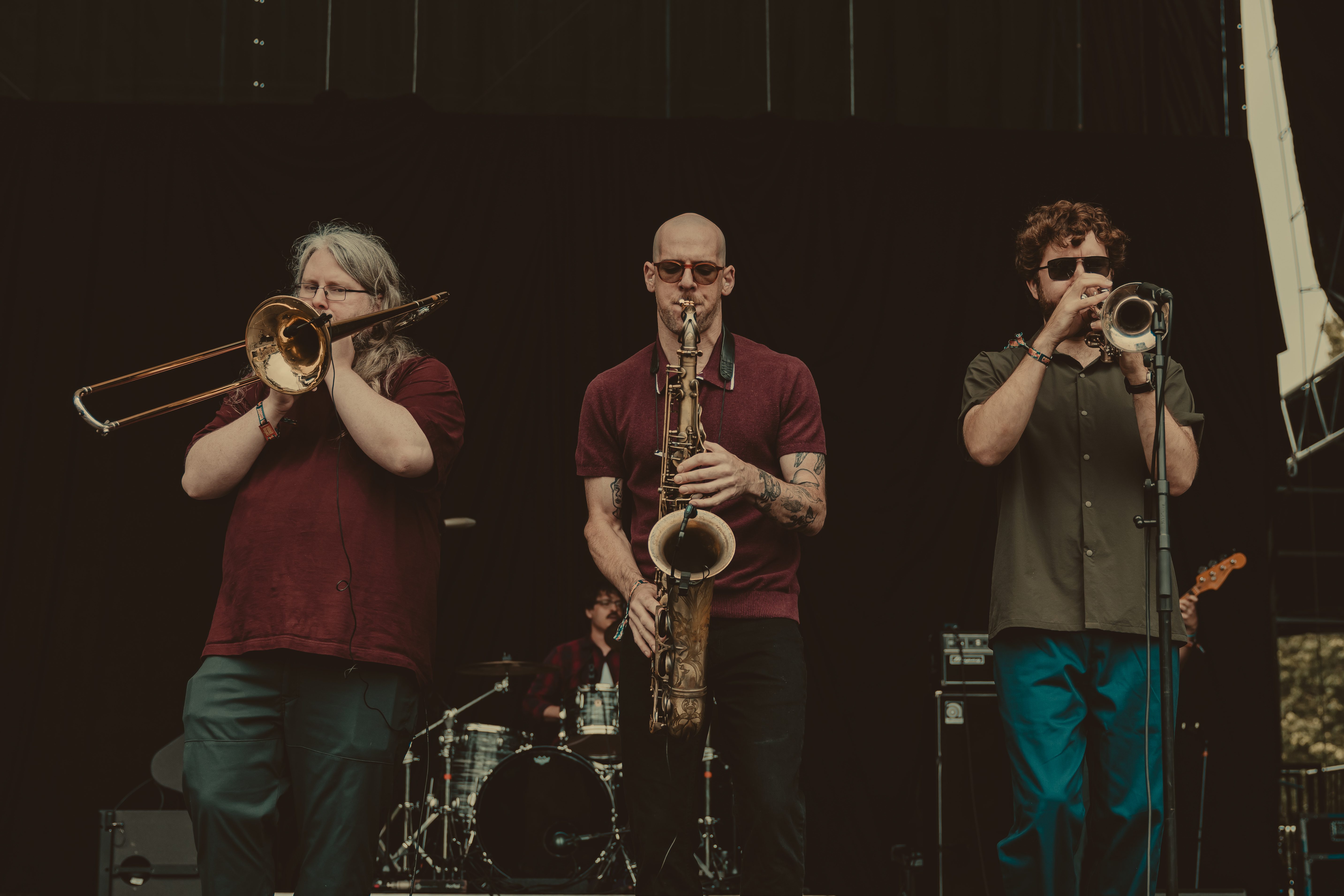 Originally scheduled third, Ripe had to cancel last minute due to a golf cart accident that left a band member with a concussion. Fans were instead treated to a set from New York City buskers Too Many Zooz. Known for their horns and percussion, the band turned a potential setback into a festival highlight. The baritone sax player stole the show with his bright blue hair, gold sneakers, and fancy footwork, adding a lively rendition of Sean Paul’s “Shake That Thing.” And yes, he did indeed shake that thing!