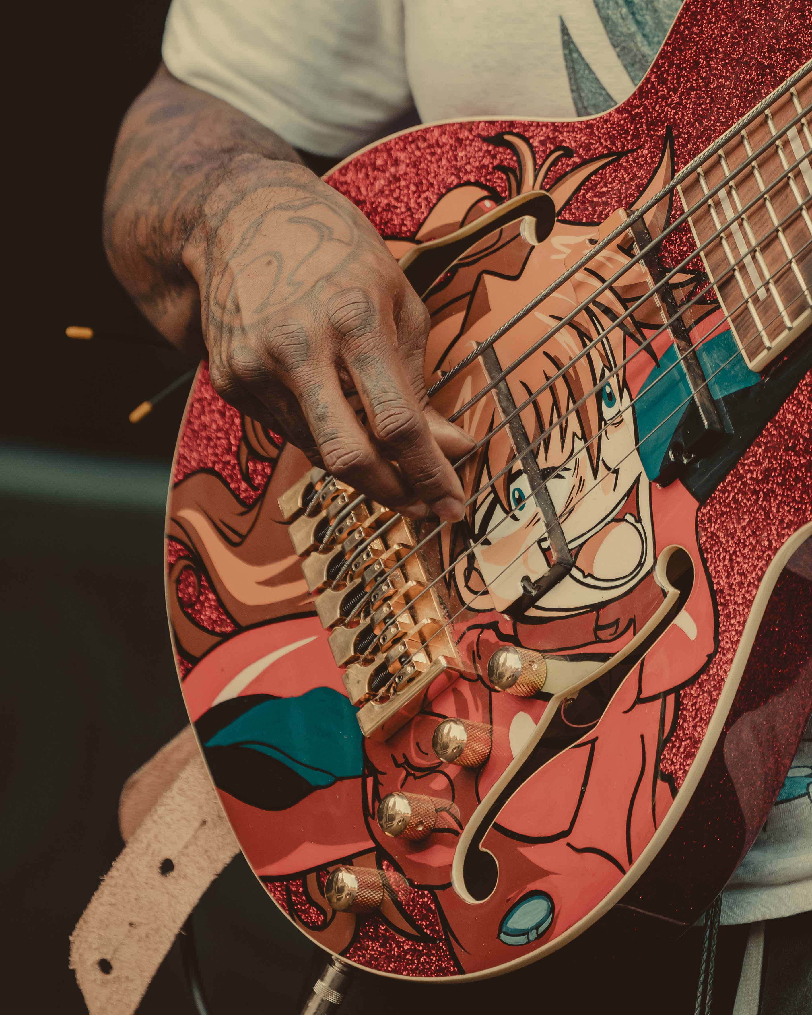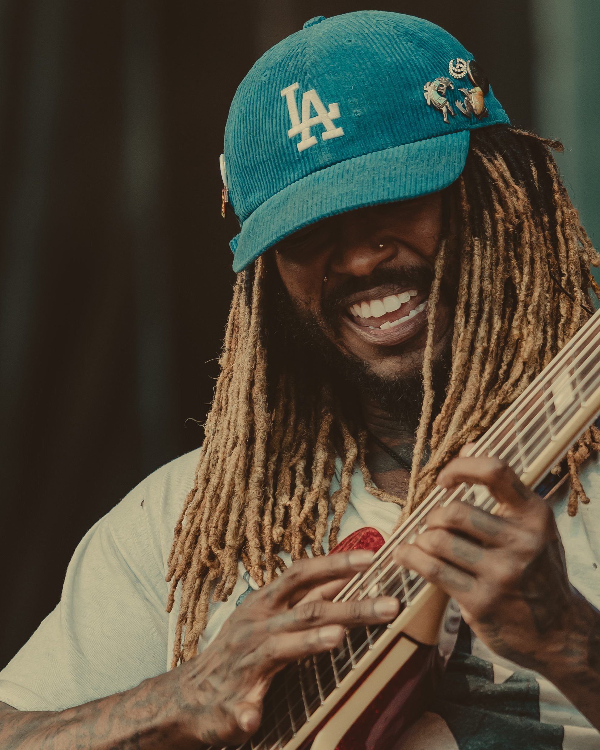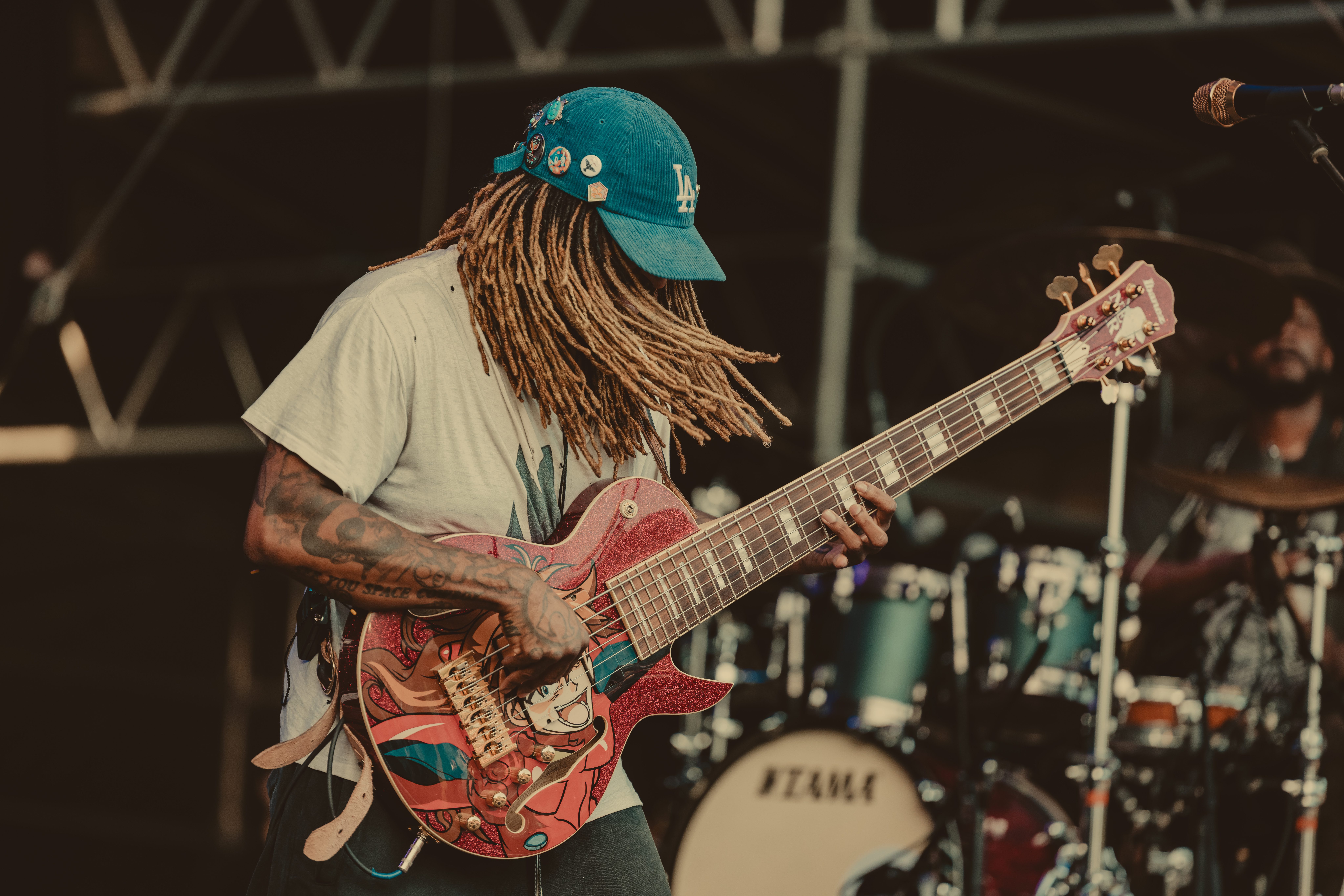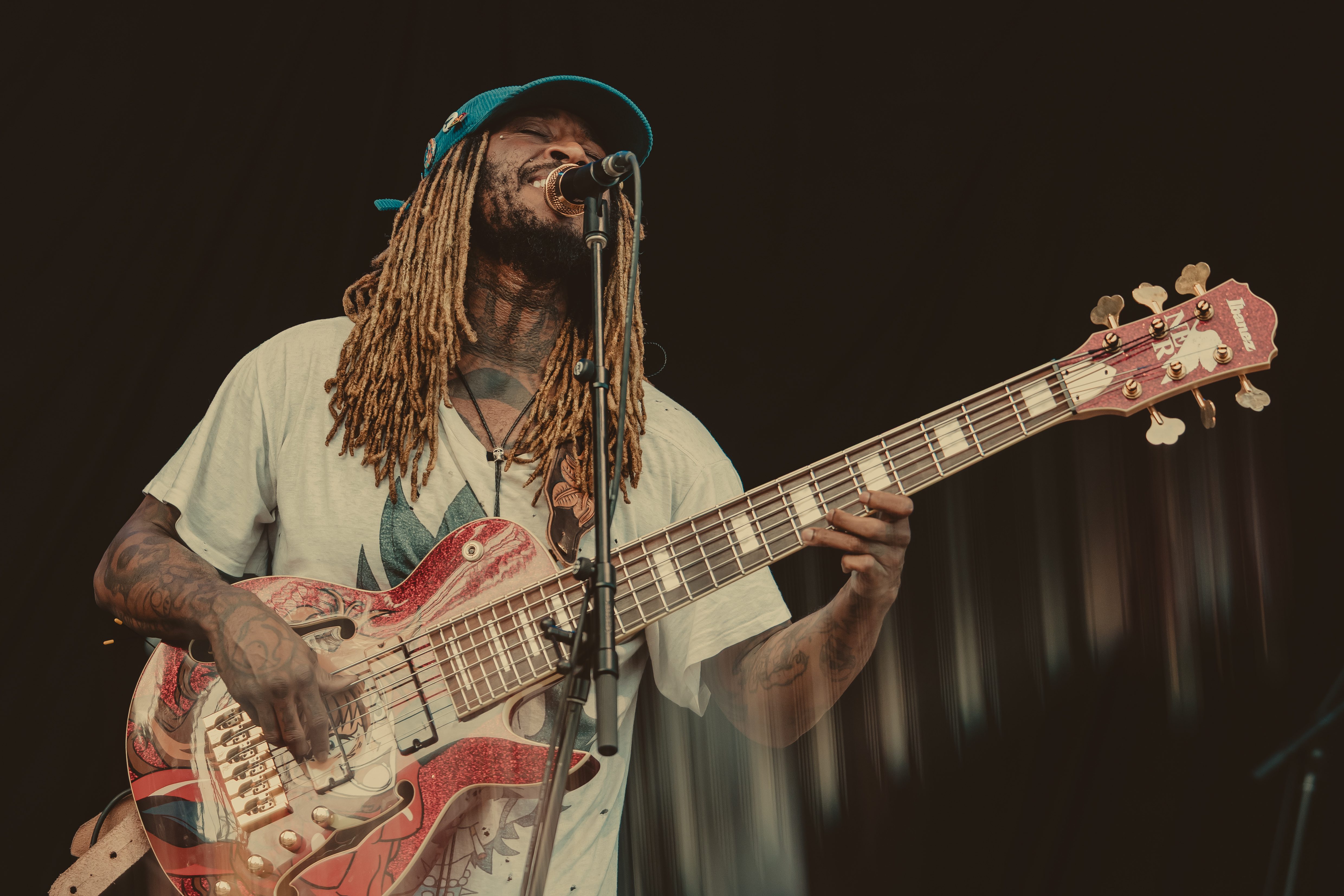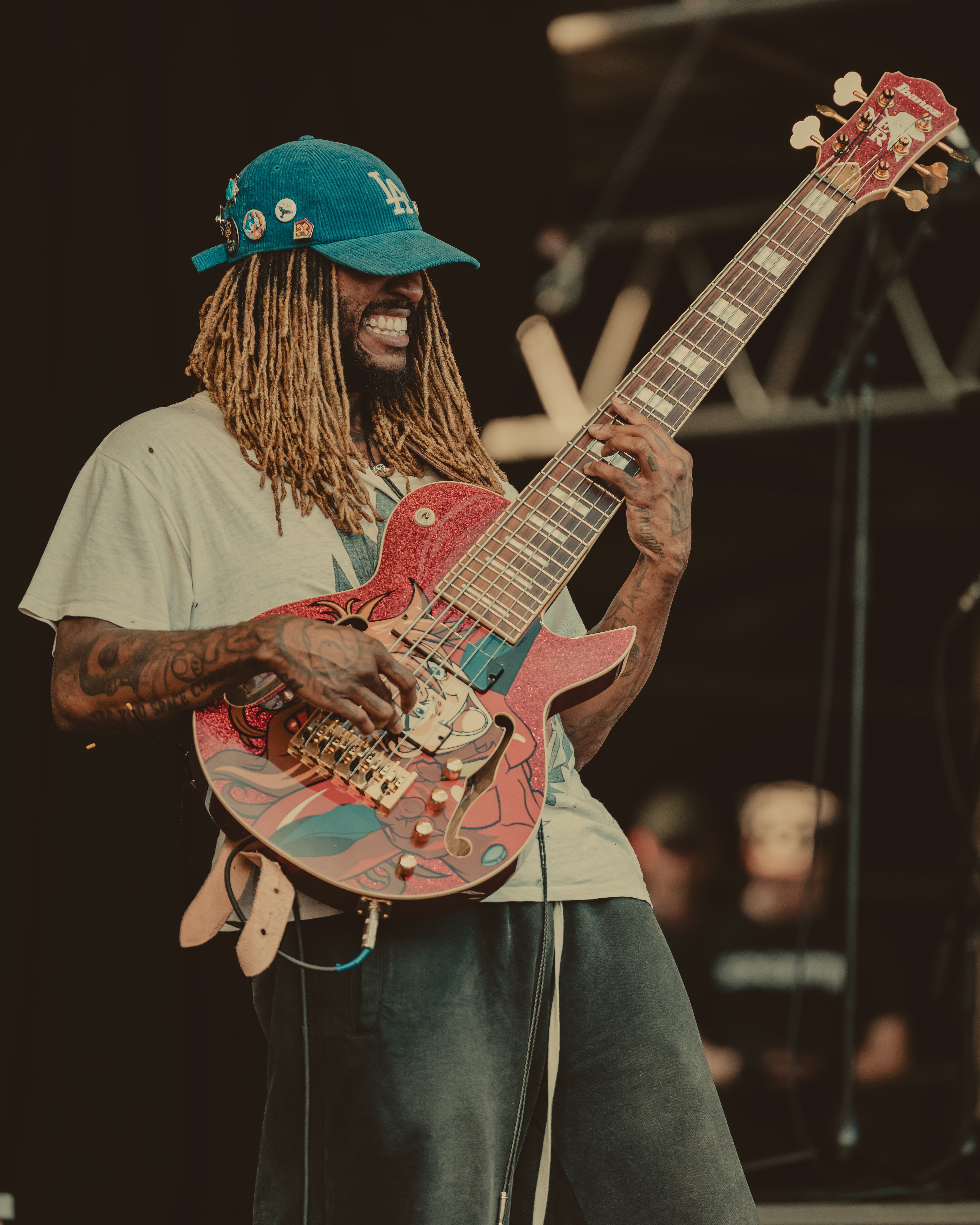 As temperatures cooled into the evening, Thundercat’s set arrived just in time for the crowd’s second wind. His bass lines meowed and pawed like a playful orange cat, a self-comparison he made during the show. The audience, re-energized by the falling temps, grooved along to his signature funk-infused brilliance.