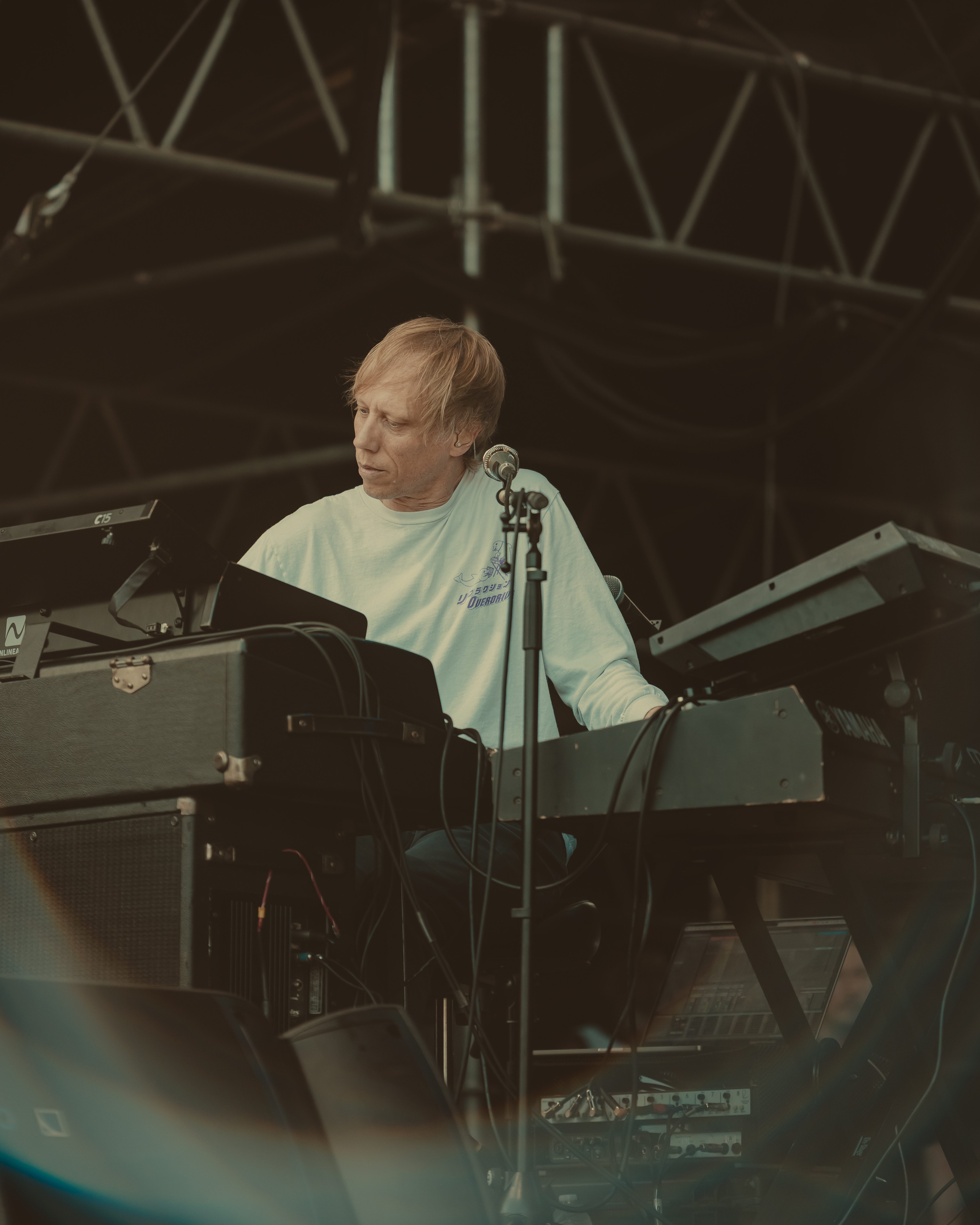 Next up, Improvement Movement’s four-piece lineup kept kept the momentum going with a sharp, focused performance that stood in contrast to the Ghost Funk Orchestra’s more expansive ensemble. Their tighter, more concise jams cut cleanly through the humid afternoon air, showcasing a crisp indie-jam fusion that had the growing crowd nodding along.