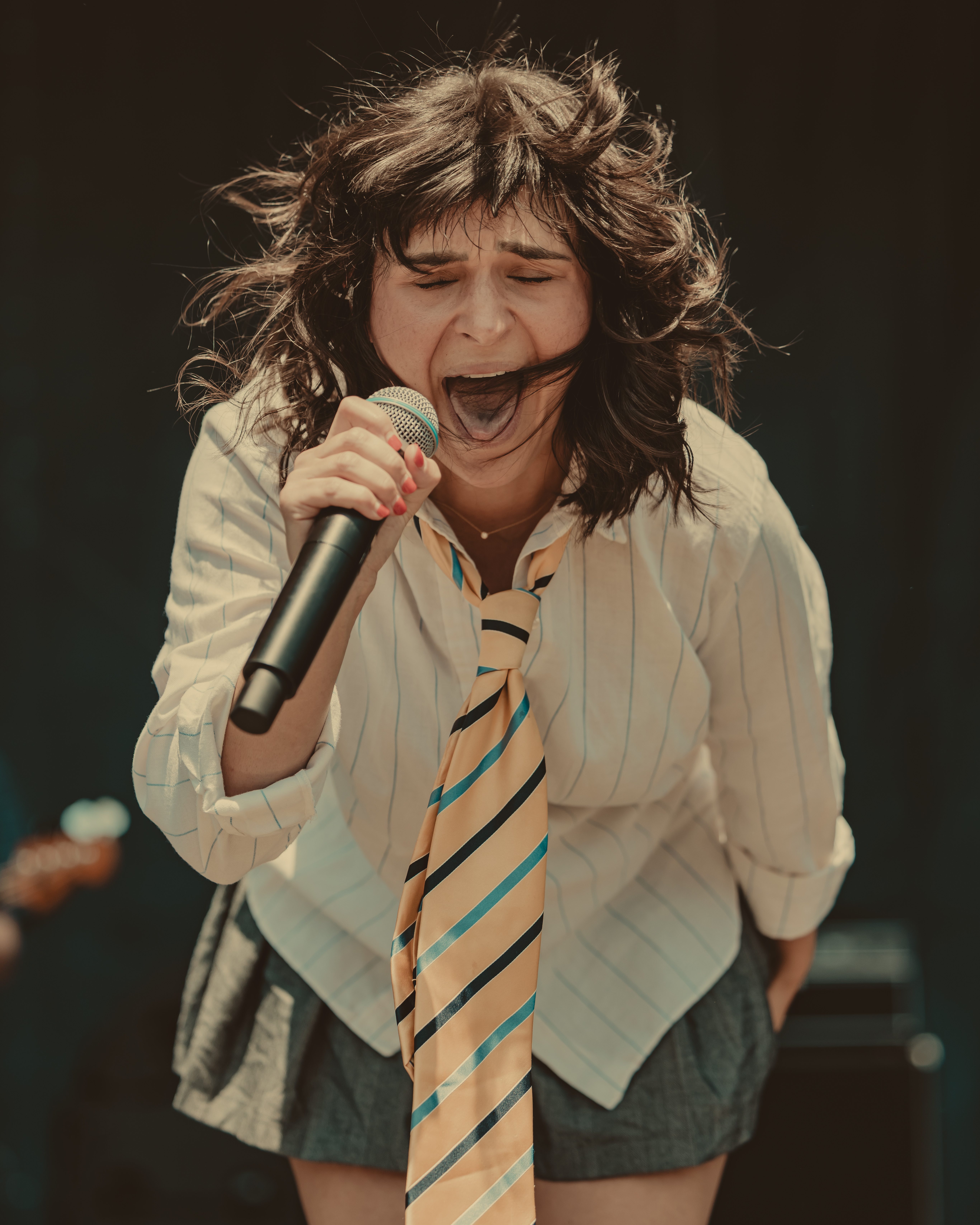 The Greeting Committee followed, fronted by a powerhouse vocalist who wasted no time setting the day’s tone with her infectious enthusiasm. Their set felt like stumbling into a sold-out midweek gig at your favorite underground venue, absolutely. In addition to their originals, they delivered a killer cover of Yeah Yeah Yeahs’ “Maps,” cementing themselves as a must-see live act.