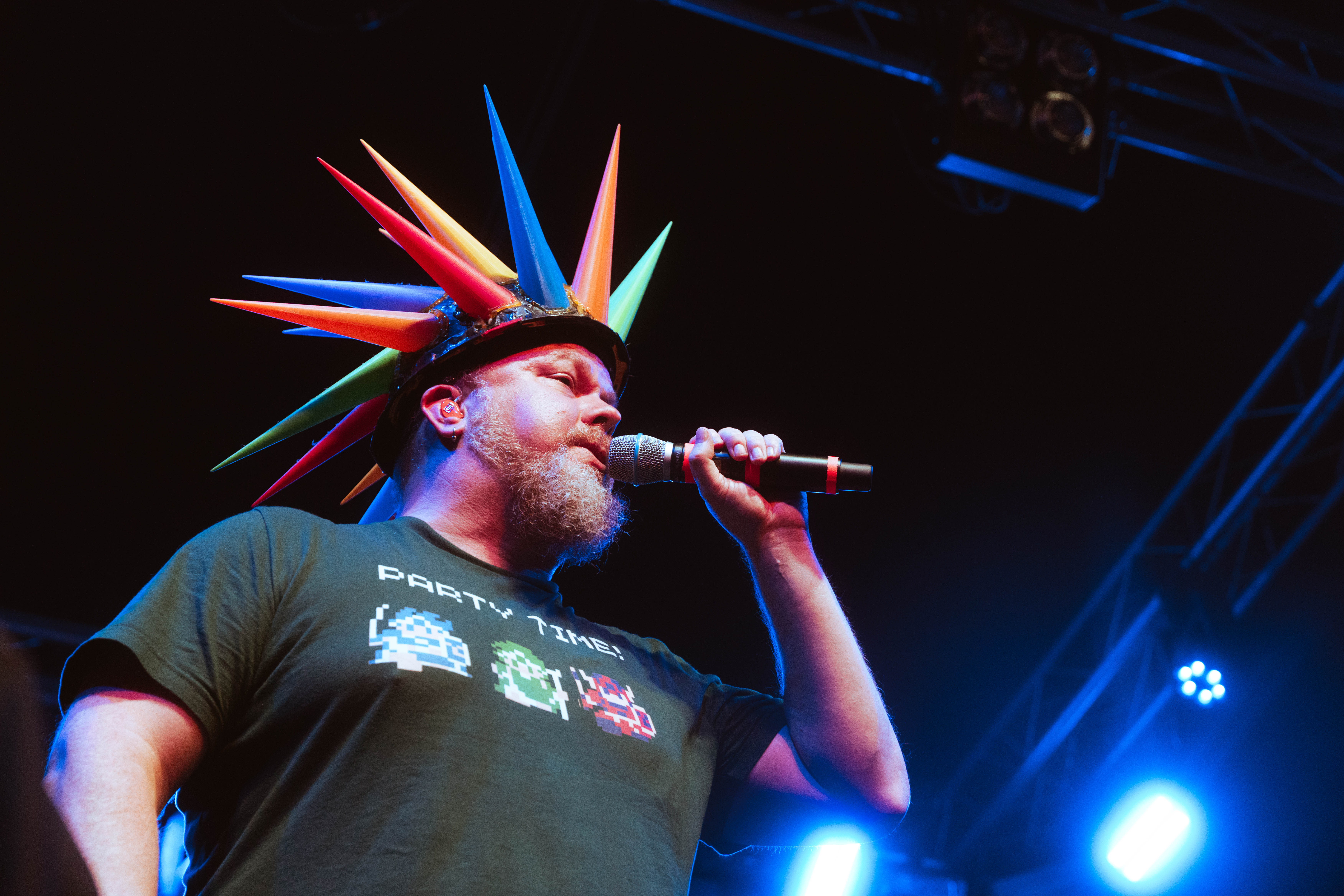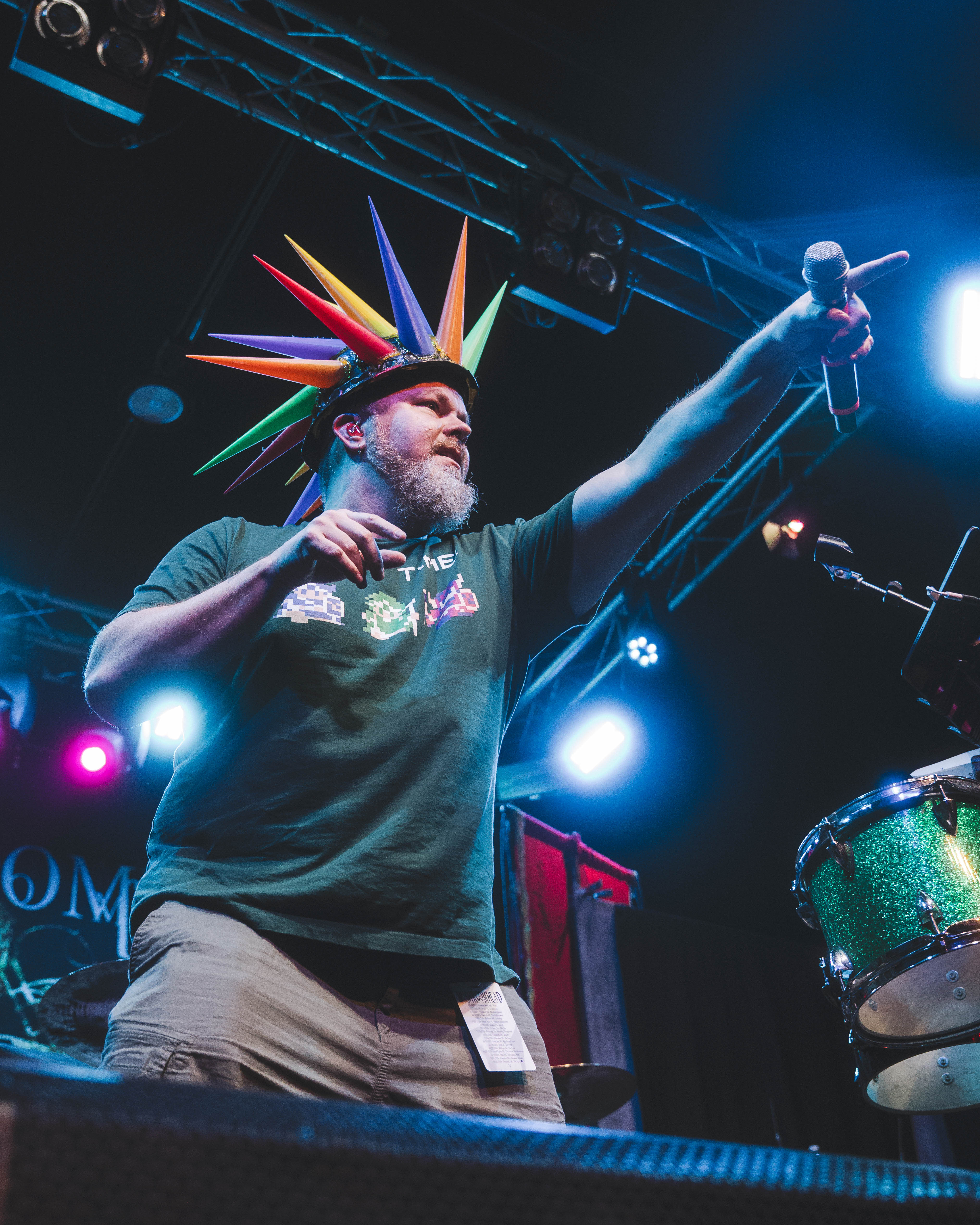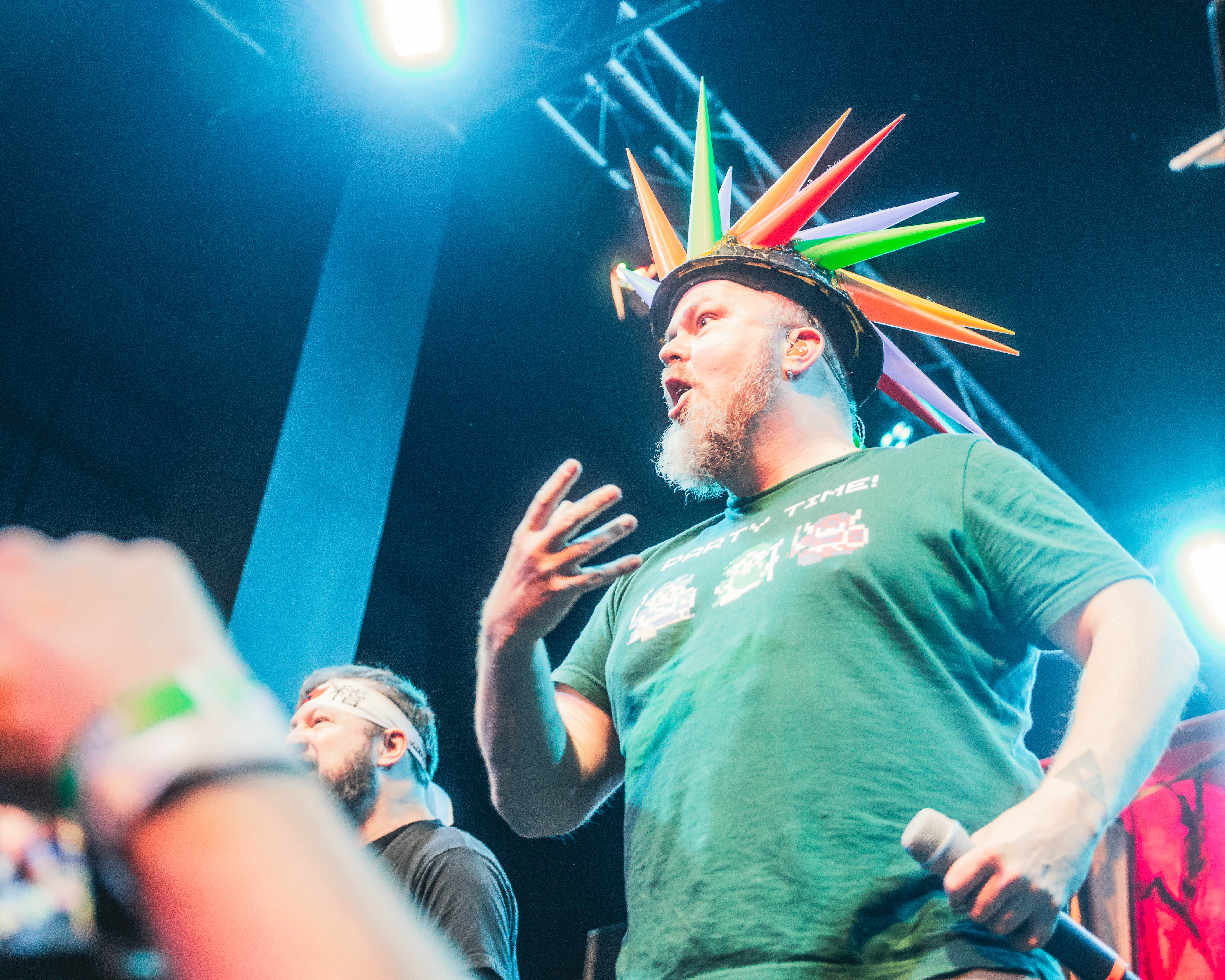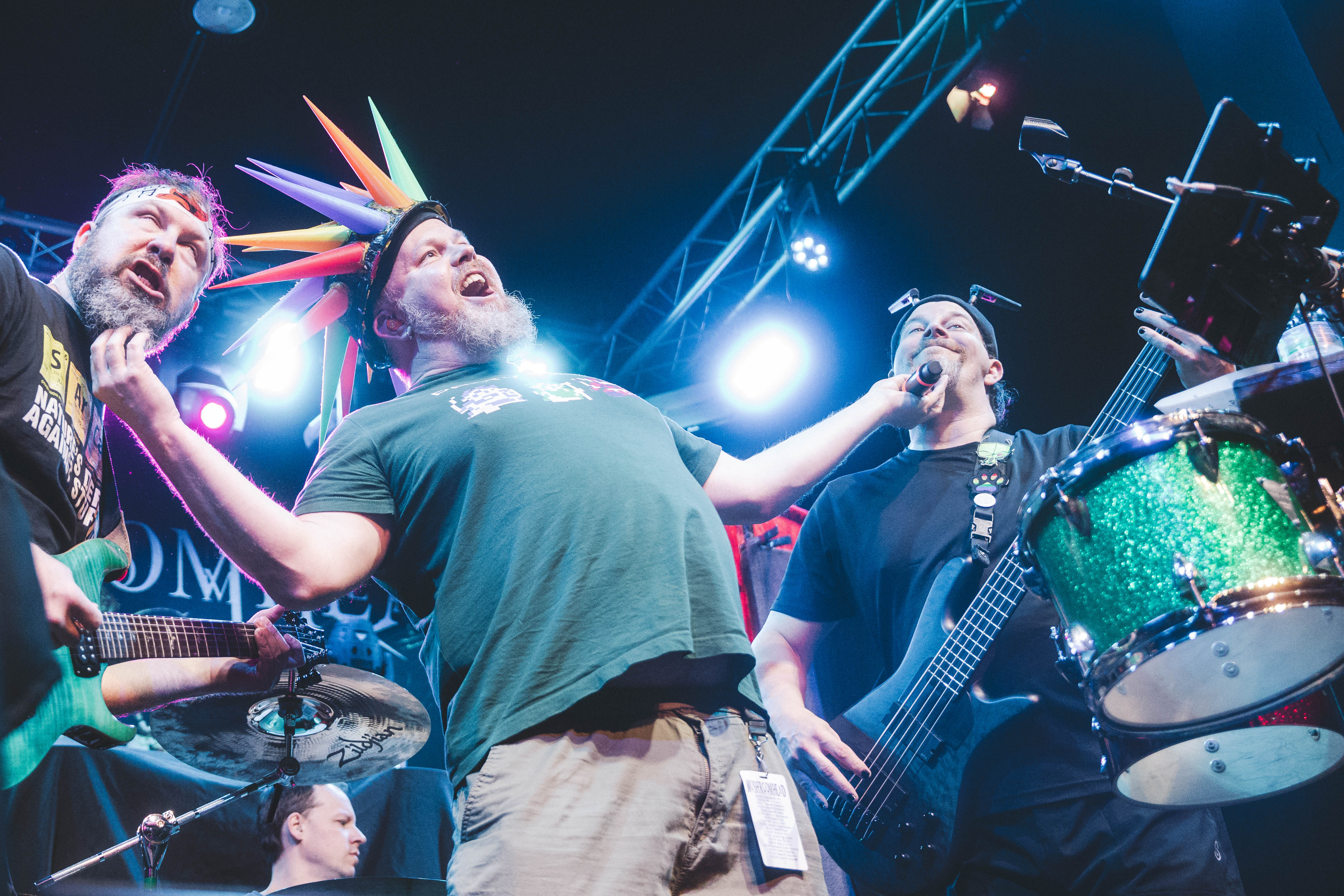 Psychostick, being the “Weird Al” of hard rock, was the perfect setup for Mushroomhead—especially with their set starter, “Obey The Beard,” giving a shoutout to everyone in the crowd who sports more than a mustache. The fun-filled comedy band is known for putting sharp humor over original music and sometimes even covers, including their song “I Can Only Count to Four,” a parody of Drowning Pool’s iconic track “Bodies.” Psychostick helped bring laughs and positive energy, turning everyday frustrations into random nonsensical anthems that get stuck in your head.