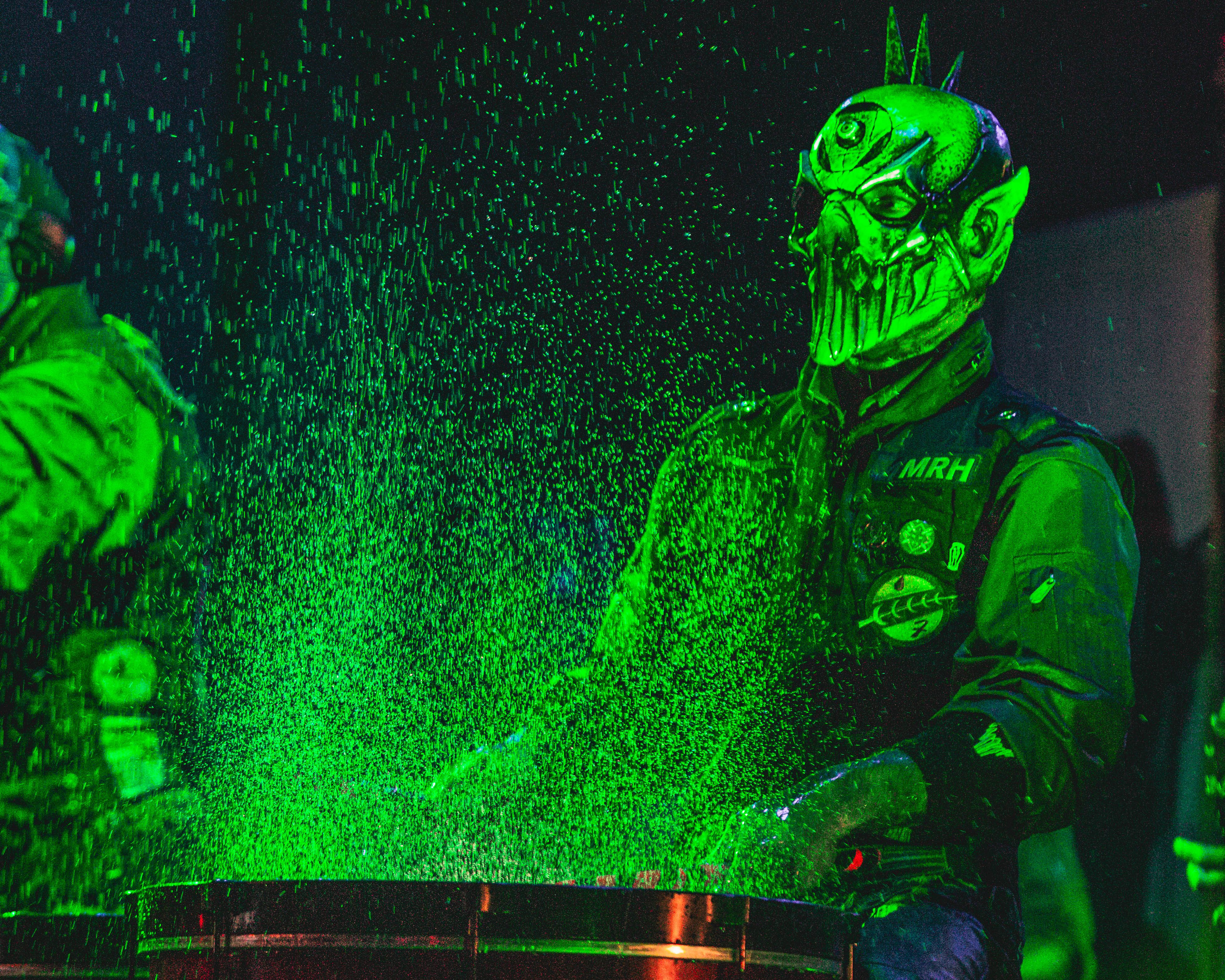 Mushroomhead are masters of blending aggressive metal with theatrical performance as well as the signature water jet percussion kit. Their larger than life performance included a ton of fan interaction, mask changes, and performer switch overs. The crowd fed off of it like maggots on wet wood, and you could conduct electricity off of it. Truly an experience more than a performance, and on top of being right around Halloween time, the show was perfect.